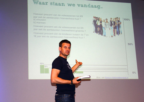 Met spreker Wilfred Genee, toch vooral bekend als de pedante gladjanus van Voetbal International, was het luchtige gedeelte van de ledenvergadering aangebroken. Hij bleek ook een andere kant te hebben en maakte het publiek op energieke wijze deel van zijn missie om gezonde gevarieerde voeding te promoten. Samen met zijn vrouw schreef hij het boek 'Vullen of Voeden', wat in het najaar ook de titel wordt van een televisieprogramma. Zijn weddenschap met Johan Derksen om vijftig voetbalkantines een gezond menu aan te laten bieden is inmiddels gewonnen en nu strijdt hij verder om in elk geval de kinderen gezond te laten eten. "Het vuur moet gaan leven. Vaak beginnen ouders hierover na te denken als ze kinderen krijgen of na een geval van ziekte dat ze meemaken, maar de bewustwording moet positiever plaatsvinden. En dat niet met een wijsvingertje, maar leuk en fris!"