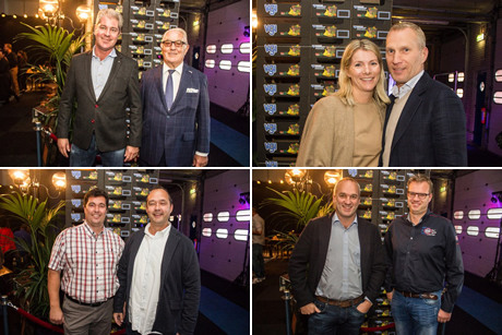 Onder de genodigden, vanaf linksboven met de klok mee: Hans en Jan van den Heuvel (Hillfresh), Jack en Hellen Aartsen (Aartsenfruit), Hans Derks en Marco Bergman (Harvest House) en Richard van den Akker en Jean Marc Eikelenboom van BUD