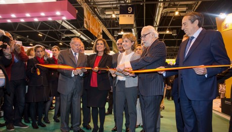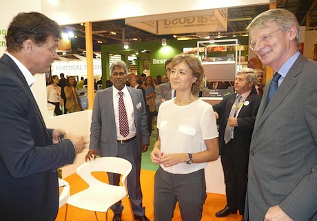 Het bezoek van de nieuwe Landbouwminister van Spanje: Isabel Garcia Tejerina samen met de Nederlandse Ambassadeur in Spanje Kees van Rij aan de Nederlandse Collectieve stand.