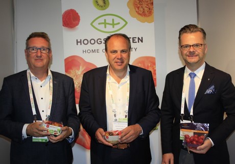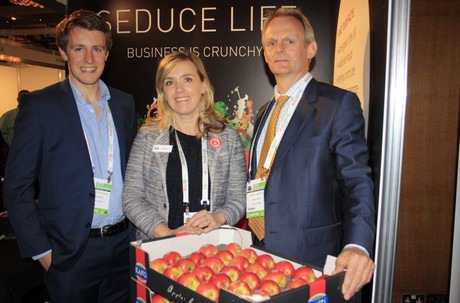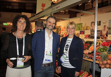 Wilma Van den Oever (GroentenFruit Huis) met Rui Medeiros Santos en Nicole Den Toom (International Innovation Company).