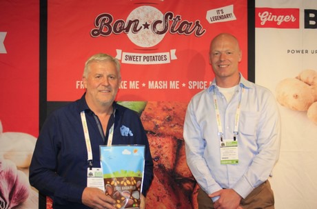 Nic Jooste en Tom Oosterman van Cool Fresh International promootten verschillende nieuwe concepten en ideeën, zoals deze nieuwe stazak voor zoete aardappelen.