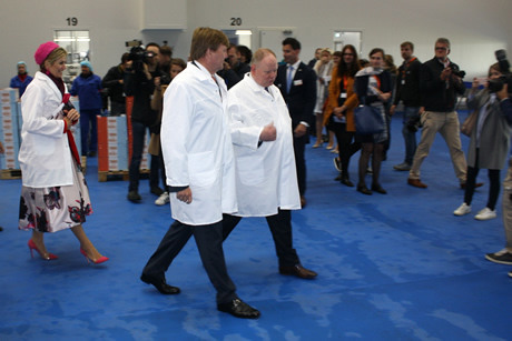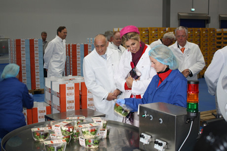 Het Koningspaar keek hun ogen uit in de fabriek en had 's avonds ongetwijfeld wat uit te leggen aan de prinsesjes. Namelijk dat de sla niet alleen uit de kas of koude grond komt, maar ook gewoon in klimaatkamers met led-verlichting wordt geteeld...