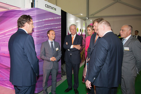 Certhon, hoofdaannemer en ontwerper van de technische enprojectmatige installaties van dit project, kreeg ook de gelegenheid om hun roltoe te lichten aan het koninklijk paar. John van der Sande (Head of R&D) enDamion Schwarzkachel (Consulting Engineer) stonden De Koning en Koningin tewoord in de Certhon City Farm. Het paar was zeer goed voorbereid en toondevolgens John grote interesse. Maxima wilde graag weten hoe er tijdens de verticale teeltwater gegeven wordt en was vervolgens erg onder de indruk toen Damion en Johnuitlegden dat er tijdens de teelt geen druppel water verspild wordt.