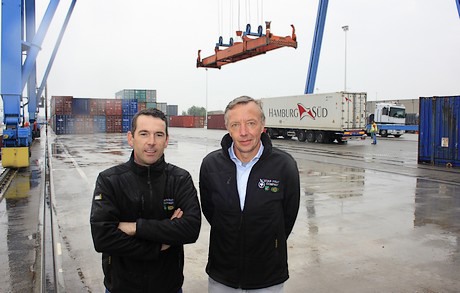 Jurgen De Witte met terminal manager Kobe Govaerts van Trimodal Terminal Brussel.