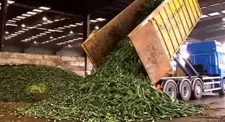 Ook in Nederland werden tonnen groenten vernietigd. Deze still komt uit een documentaire die TV West maakte over de gevolgen voor komkommertelers.