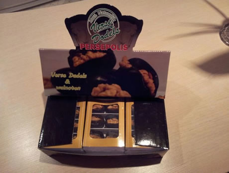 Het productieproces vindt volledig plaats in Iran. "Hier selecteren wij rondom de stad Bam de beste verse dadels. Vervolgens kiezen we in de omgeving van Hamadan de mooiste walnoten. Alles wordt verscheept naar een fabriek waar met grote zorg de dadels worden ontdaan van hun pit. In het gat dat hierbij ontstaat, wordt een halve walnoot geplaatst. De kersverse snack wordt nu verpakt per drie, zes of twaalf stuks en geleverd in mooie displaydozen waarin de verpakkingen nog beter tot hun recht komen", vertelt Bas van Walderveen, enthousiast.