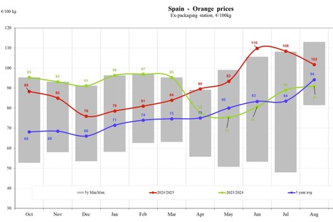 Spanje ziet sinaasappelprijs in oktober scherp dalen naar 81 €/100 kg