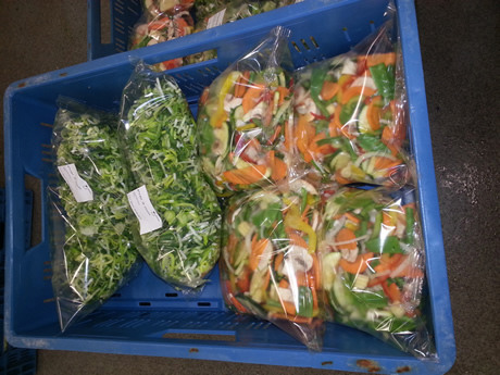 Twee jaar terug startte Eussifruit met een eigen snijkeuken in eerste instantie als service-afdeling naar de klanten toe. Momenteel is de keuken een belangrijke poot binnen het bedrijf geworden, waar dagelijks vier van de vijftien mensen binnen het bedrijf werken. "De snijkeuken is echt als service naar de klanten opgezet, maar levert nu nieuwe klanten op", vertelt Xavier. "We snijden zowel groenten, fruit als natte salades. De klant geeft aan hoe hij het gesneden wil hebben en wij bieden maatwerk."