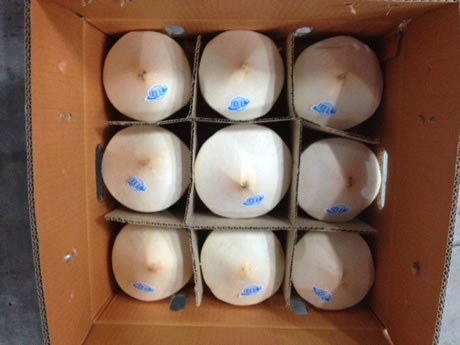 Tevens ontvangt 888 Fruit Company vrijdag de eerste jonge, gekapte kokosnoten uit Thailand. "Aangezien het mooi weer is, denk ik dat we die goed kunnen verkopen. Zeker als het zonnig is, zetten consumenten graag een opener en vervolgens een rietje in de kokosnoten. We krijgen de noten per negen stuks verpakt binnen", vertelt Nico. Vrijdag krijgt het bedrijf ook nog eens de eerste Chinese nashiperen binnen, gevolgd door de eerste Chinese pomelo's. "Op de Franse markt zijn we een redelijk grote pomelo-importeur met de focus op de grootwinkelbedrijven."