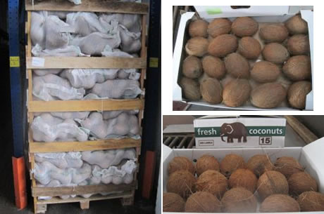 Links en rechtsonder: kokosnoten uit Sri Lanka.