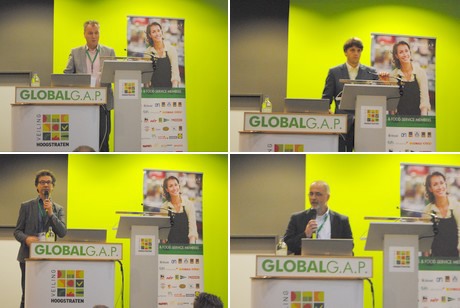 Jan Zegwaard van GreenCo liet het verhaal zien vanuit de producenten. GreenCo produceert op 27 ha in Nederland, 50 in Spanje en 3 in Mexico. Volgens hem is Global GAP ook intern van waarde voor het bedrijf: een manier om overal ter wereld dezelfde teelt- en kwaliteitsnormen aan te houden. "Ik spreek geen Spaans, maar Global GAP snappen ze overal. Als overal dezelfde standaard in bemesting, bestrijding wordt gehanteerd, kun je zelf focussen op de klant", verduidelijkt Zegwaard. "Ook tijdens de EHEC-crisis konden we snel aantonen dat alles ok is." Verdere ontwikkeling ziet Zegwaard voor de verticale koppeling in de keten. "Er zitten te veel schakels in de keten. Product wordt omgepakt, er wordt horizontaal geschoven en te lang opgeslagen. De dupe is de consument. Met een systeem kunnen we dat voorkomen."