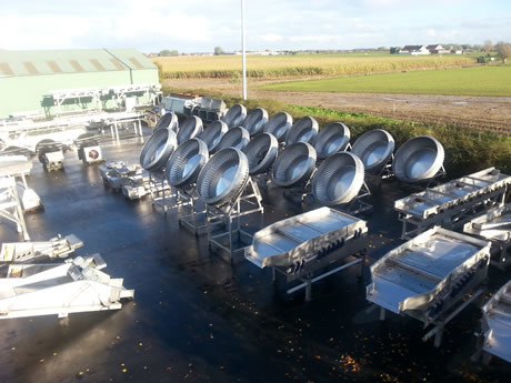 Ook palletstellingen, motoren, pompen, tanks, heftrucks, compressoren, transportbanden, een complete waterzuiveringsinstallatie en trilgoten behoren tot de te veilen inventaris.