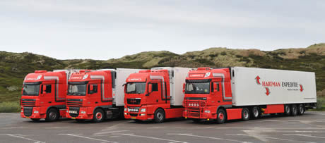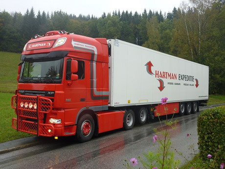 Het wagenpark van Hartman Expeditie omvat de merken DAF, MAN, Scania en Volvo en bestaat uit 53 eigen trailers, waarvan 10 met laadklep, vier dubbele verdampers, 28 eigen trekkers. "We hebben een systeem met drie chauffeurs op twee auto's, waarbij elke auto jaarlijks 250.000 kilometer op de teller bijschrijft", zegt Ronald. Hij verwacht niet dat de specialisatie op Scandinavië de komende jaren zal verdwijnen. "Voor 98% rijden we op Scandinavië. Dat is onze tak van sport. Wel zien we duidelijk dat deze landen in het vierde kwartaal meer eigen product hebben, want dan zijn de volumes een stuk lager."
