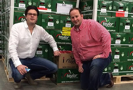 Tholen - Deze ochtend, 4 april 2014, zijn de eerste Nieuw-Zeelandse Royal Gala van het merk Taylor binnengekomen bij FruitConneqt. "We zijn hiermee één van de eersten in Europa. De appelen zijn ook dit jaar weer van sublieme kwaliteit", vertelt Matthijs Nijhoff. "Het merk Taylor is in Europa exclusief bij ons beschikbaar en zal volledig volgens de waarden van Fruit-Conneqt in de markt gezet worden." Taylor