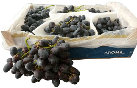 Perla Nera een late soort blauwe druif, verpakt in het huismerk AROMA