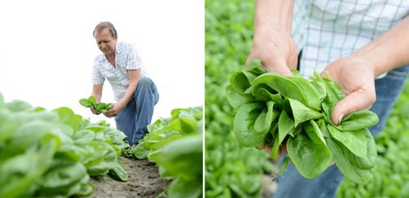 Jacob Broersen tussen de Nederlandse productie, voor de website www.detelers.nl. De Spaanse spinazie komt aan met koeltransport en wordt bij MTS. Broersen in Noord-Holland verpakt. De meeste spinazie gaat in verpakkingen van 450 gram. "Voor export is het soms wat kleiner, en gaat het naar 300 of 350 gram. De standaard is de 450 gram, de tweepersoonsverpakking."