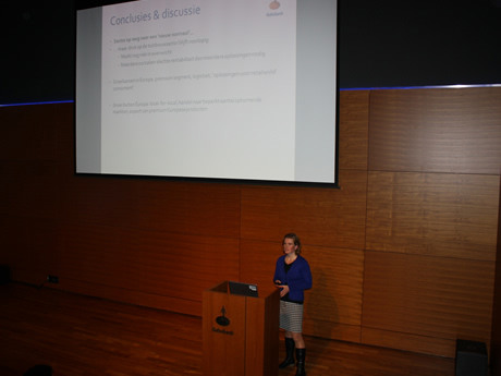 Cindy schetste de teruglopende kredietverlening aan de glastuinbouw, maar toonde ook de kansen voor Nederlandse ondernemers zoals de logistieke ligging, innovatiegraad en de kansen op de opkomende markten. Verder ging ze in op de kleiner wordende 'middenmarkt' door de opkomst van de hybride consument. "Dezelfde consument die net een nieuwe iPhone koopt, doet vervolgens zijn boodschappen bij de Aldi. Dit toont de groei van het laagwaardige en premium segment."