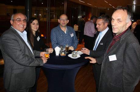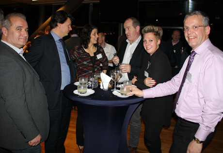 Leo Smedts (Euro Pool System), Peter Vaesen (Rabobank), Silvia Janssen, Theo Geven (beide Kompany), Kim Hendriks (Sherpa) en Hans Egelmeers (Accon/AVM)