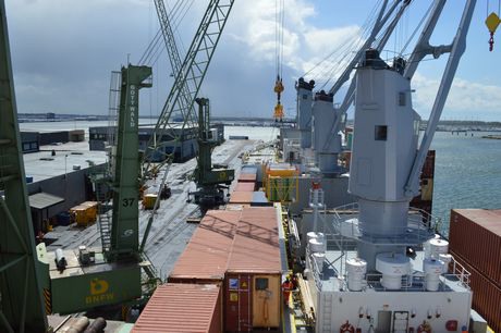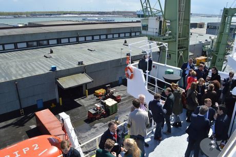 Vanaf de brug van het schip heb je goed uitzicht op het lossen.