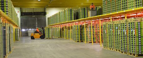 Nadat de kraan de pallets kiwi's op de kade heeft neergezet, pakken twee heftrucks de pallets op en rijden het fruit de opslagloods in. Daar worden de pallets voorzien van een extra code, waardoor elk product uiteindelijk vanaf de consument terug te leiden is naar de teler in Nieuw-Zeeland. Elke tussenstap wordt vastgelegd: waar is het product verpakt en door wie, wanneer heeft de teler gewasbeschermingsmiddelen gebruikt en welke. Al deze informatie zit uiteindelijk verstopt achter een barcode op de kiwi. De opslag in Zeebrugge biedt ruimte aan maximaal 25.000 pallets kiwi's.
