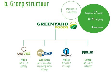 Hoe zijn we vandaag gekomen tot die 3,9 miljard omzet? "De marktomstandigheden waren niet groeiend. Toch zijn de bedrijven door het concept dat we hebben ontwikkeld. Samen met onze klanten, de retail, hebben we de markt gekannibaliseerd. Dit concept noem ik de verticale logistieke trechter met al zijn toegevoegde waarde in het systeem. We bieden de toegevoegde waarde van een volledig assortiment, verpakken, logistiek (snelheid en efficiëntie) maar ook het rijpen van groenten en fruit. Dit concept heeft in feite automatisch productvolumes door het systeem in onze bedrijven gebracht en is ook samen opgebouwd met de retailer om het meest ideale assortiment in het schap te krijgen in functie van de consument. Door dit systeem hebben we helaas maar in beperkte mate de consumptie kunnen laten groeien. We hebben met name marktaandeel genomen en de keten efficiënter georganiseerd."