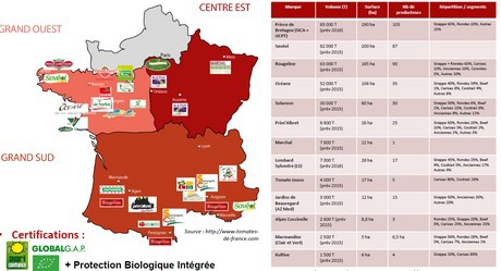 Het tomatenareaal in Frankrijk is vrij stabiel gebleven in de afgelopen jaren, maar er zijn binnen de verschillende teeltregio's wel verschuivingen te zien. Zo neemt de productie in het Zuidwesten toe. Er wordt daar ook steeds meer in kassen geteeld.