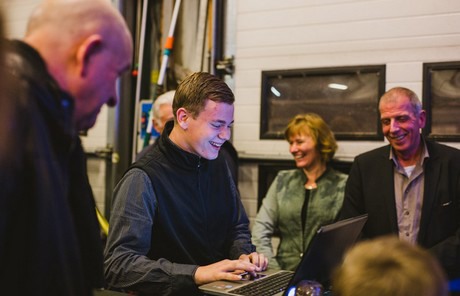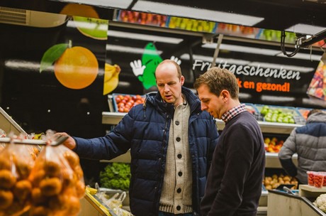 Websitebouwer Jan-Willem demonstreerde het plaatsen van een bestelling in de webshop en de mogelijkheden van het ophalen, maar ook bezorgen van een bestelling. Foto Kwakkel's Groenten- en fruithandel