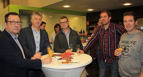 Tijd voor een hapje en drankje. Links Curd Vanmarcke van Vergro.
