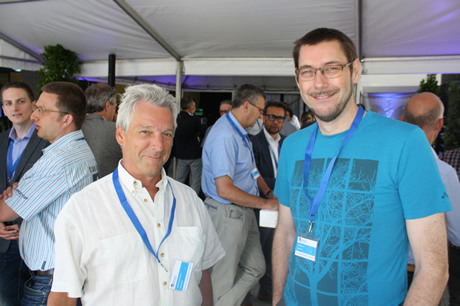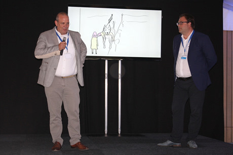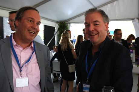 Danny Cevaal (rechts) neemt binnenkort afscheid en werd door John Schouw in het zonnetje gezet: Je hebt niet je steentje, maar een paar verdiepingen bijgedragen!"