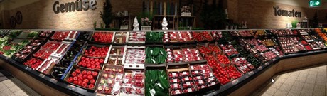 Globus heeft in heel Duitsland 46 winkels en draaide vorig jaar een omzet van 7,4 miljard euro. AGF is voor de keten een belangrijk onderdeel. De kleinste AGF-afdeling van Globus omvat 320 m2, de grootste is maar liefst 920 meter groot. "Gemiddeld hebben we jaarrond 25 variëteiten in de schappen liggen", vertelt Tim Strubing. Daarnaast zijn er nog 5 biotomaten te vinden en neemt lokaal product een belangrijke rol in.