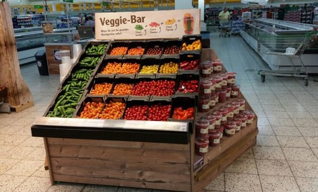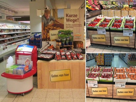 Hetzelfde geldt voor de producten uit de regio. AGF die van maximaal 40 km ver komt, mag onder het speciale 'Gutes von hier' label komen. "Niet alle winkels hebben dat, niet iedereen heeft de faciliteiten in de buurt", vertelt Tim. "Maar het is wel een belangrijk aandeel."