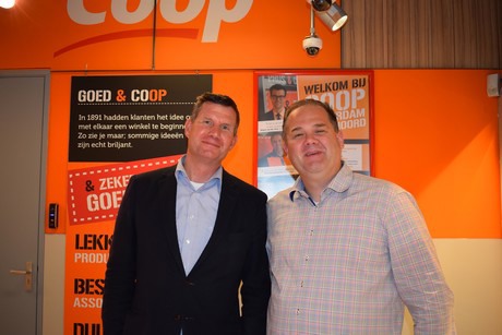 Eugène Bode van Van Oers United (l) en en Maarten 't Hoff AGF-catagory manager Coop