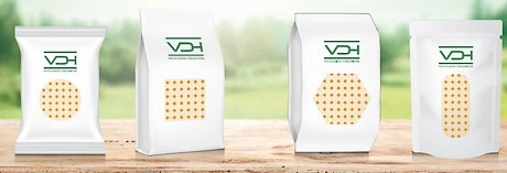 VDH Concept introduceerde onlangs de unieke SQ-pack. "Bij deze folie hebben we voornamelijk aandacht besteed aan zijn duurzaamheid. De verpakking is verkrijgbaar in een 100% composteerbare uitvoering of in een LDPE folie met 50% gerecycleerde plastic. Daarnaast zijn er verschillende uitvoeringen van verpakking mogelijk. Zo is de SQ-pack mogelijk als 'pillow bag', quadroseal (stazak), doypack of met side folding. De klant kan vervolgens diverse 'venstervormen' kiezen die als een netstructuur worden gesimuleerd.