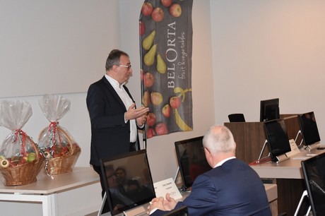 Tholen - Vanaf vandaag kunnen inkopers bij BelOrta Borgloon iedere dag vanaf 08:30 hun hart ophalen aan de modernste apparatuur. De gloednieuwe verkoopzaal van de groenten- en fruitveiling is voorzien van touchscreens, gebruiksvriendelijke toetsenborden en zes klokken die de prijzen tonen van andere veilingen in het Belgische circuit. "De klok blijft centraal in de verkoop van fruit", aldus directeur Filip Fontaine. "Dit garandeert de beste prijs voor onze klanten." Gisteren werd de zaal feestelijk geopend.