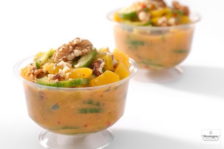 De naam Verstegen associëren veel mensen met vlees en/of vis, maar niets is minder waar. Jan: "Bij de ontwikkeling van mixen en sausen kijken we altijd naar 4 groepen: vlees, vis, kip én AGF. We zien ook dat binnen deze groepen AGF groeit op o.a. convenience producten." Het is dus niet verwonderlijk dat in de keten vaak wordt samengewerkt met Verstegen Spices & Sauces. Zowel in Nederland als internationaal. "Nederland en ook het Verenigd Koninkrijk zijn vaak de trendsetters als het gaat om inrichting, assortiment en innovaties. Het panklaar assortiment bijvoorbeeld is nergens zo uitgebreid als in Nederland. De Verenigde Staten wordt vaak als trendsetter gezien, maar een vertrouwd product in Nederland als een nasigroentenpakket, is in de VS lastig te vinden. Tijdens de afgelopen Fruit Logistica 2018 was dit duidelijk te herkennen. In de Nederlandse hallen vond je weinig losse producten maar des te meer innovaties en concepten. Nederland is van oudsher toch een innovator in de AGF sector."