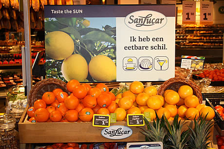 Tholen - Wie Jumbo Koornneef in Oud-Beijerland binnenloopt kan niet om het schap met SanLucar fruit heen. De supermarkt hoort bij de eerste winkels die de 'vruchten plukken' van de start van SanLucar in Nederland. "We voorzien nu een aantal winkels van dagelijks vers product, promotiemateriaal en winkelbegeleiding. Dat doen we nu nog allemaal zelf, maar zodra we met onze partner voor de logistieke dienstverlening starten, zijn we klaar voor een verdere uitrol op de Nederlandse en Belgische winkelvloer."