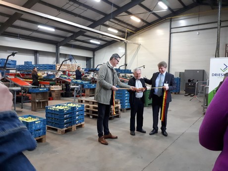 Alfons Drillieux (Healthy Fruit) knipt het lint door met burgemeester Boudewijn Herbots en Jan de Keyser (BNP Paribas Fortis)