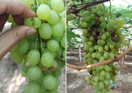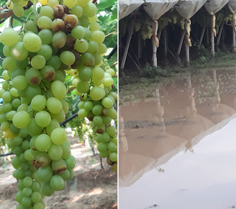 "De hoger gelegen velden hebben het er weliswaar beter van afgebracht, maar er zijn ook genoeg druiven die zo naar de fabriek kunnen en hopelijk voor de wijn nog wat opleveren", vervolgt Lucien. "Alle variëteiten hebben schade, al zijn de witte Italia-druiven met pit er het meest gevoelig voor", vervolgt Lucien. "Ik heb momenteel een extra kwaliteitscontroleur op locatie lopen. Die keur op locatie is dit jaar wel erg belangrijk. Alleen de druiven die 100% goed zijn voor export naar Europa krijgen een 'go'."