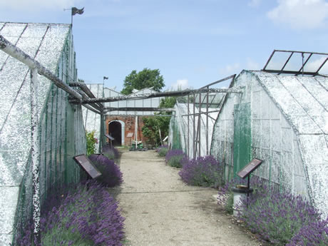 Druivenkwekerij Sonnehoeck met achterin de fruitmuur.