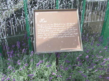 Bordjes bij elke druivenkas geven uitleg, speciaal voor de bezoekers van Sonnehoeck.