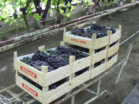 De eerste gesneden druiven klaar voor verkoop.