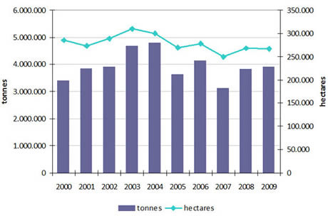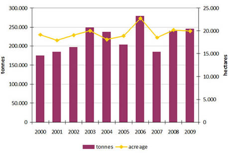 Groentenproductie in Roemenië 2000-2009