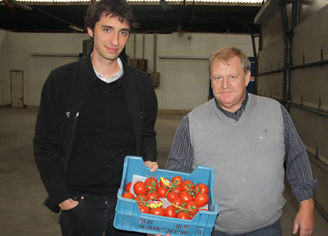Jonathan Vandesande en Paul Vanderauwera tonen de Elite-tomaten.