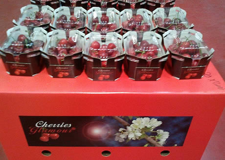 "Het product ziet er goed uit en de kersen zijn op een aantrekkelijke en unieke manier verpakt. Ze worden vermarkt onder het merk Glamour", vervolgt hij. "Onze klanten keken al uit naar het zomerfruit en gisteren konden ze hiermee kennismaken." Stijn geeft aan dat de kersen worden geteeld in verwarmde kassen. "De weersomstandigheden zijn op dit moment veelbelovend. Zo kunnen we het tijdens het seizoen dag na dag een kwalitatief hoogwaardig product aanbieden."