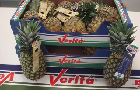Een belangrijk product voor Verita is de ananas. "Deze komen uit Costa Rica en worden vermarkt onder het eigen merk Verita." Het bedrijf heeft een eigen vestiging in Costa Rica. "Onze eigen mensen zijn gespecialiseerd in het fruitvervoer voor lange afstanden. Hierdoor kunnen we de juiste kwaliteit leveren. Per jaar vervoeren we ongeveer 700 containers rechtstreeks naar onze afnemers." Volgens Muhammet is het momenteel krap in de ananasmarkt. "Er is al enkele weken sprake van een prijsstijging. Dit komt door het meloenenseizoen, dat in volle gang is waardoor er minder ruimte is voor ananas bij de zeevracht. Gelukkig hebben wij goede afspraken met MSC en Maersk waardoor we onze klanten jaarrond voldoende kunnen beleveren en scherp kunnen prijzen."Een ander product onder het merk Veritas is gember. "We hebben hierbij speciale kartonnen verpakkingen en leveren het gember in de 300 gram+ maat. Het aandeel in de gember is niet heel groot en dit leveren we alleen in de winter", aldus Muhammet. "Het seizoen is bijna afgelopen en de nieuwe komen weer in september." In de toekomst wil Verita ook andere producten onder het merk vermarkten. "Dit zal in eerste instantie gaan om appelen, peren en druiven." Om het merk te introduceren, hebben we jaren geleden bananen uit Ecuador aan Roemenië geleverd onder Verita.