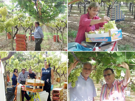“Zo bezochten we ten noorden van Bari de omgeving van Trani, Corato. In deze streek vinden we heel lekkere druiven omdat er hier ook meer kalk in de grond zit. De druiven zijn daardoor ook in de meeste jaren altijd mooi geel, maar iets kleiner van druif. In deze streek bezocht ik het bedrijf San Pietro, dat tot de Amoroso groep behoort. Dit familiebedrijf bezit hier 40 ha velden in eigen beheer. Ze kopen ook jaarlijks nog eens 40 ha druiven bij. De druiven van dit bedrijf worden vooral in België verkocht op het CEI te Brussel. Als belangrijkste merken zag iker Daniele, Imperatore en Delizie.”“Als ik hun vroeg wie hun regelmatige klanten zijn, dan kreeg ik,als antwoord : Colruyt, Delhaize en groothandelaren op de markt. We gingen ook kijken naar de pluk die 's morgens plaats vindt, want de druiven moeten geplukt zijn vooraleer het warm begint te worden. Dit werk is toch wel zeer arbeidsintensief. De selectie voor hun goede merken gebeurt echt met veel zorg. Het zijn allemaal dames die in staan voor de verpakking van de druiven die plaats vindt op het veld zelf. Nuttig om te weten is: 50 % komt in aanmerking als eerste kwaliteit. De rest moet verkocht worden in raviers van 1 kg of kleine kistjes van 2,5 kg. Ik kreeg hier ook als info dat het dit jaar geen eenvoudig jaar is voor de producenten omdat de bloei niet zo goed verliep en daardoor de druiven niet allemaal gelijkmatig rijp zijn. Er is dus wat meer werk voor de producent. Na het plukken, worden de druiven zeer snel gekoeld in een ruimte die zich op het domein bevindt. Maandag geplukt is woensdag morgen op de markt in Brussel. Verser kan het niet.”