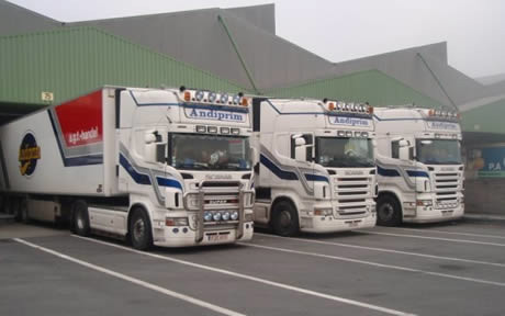 Andiprim valt onder groep A. de Witte. Het grootste deel van het vervoer vindt plaats in België en ongeveer de helft is voor bedrijven uit de groep. De rest van de klanten zijn ook bedrijven uit de AGF-branche. Andiprim is sinds vorig jaar gevestigd bij de Mechelse Veilingen in Sint-Katelijne-Waver. "We zijn erg tevreden met deze locatie omdat het centraal ligt tussen Brussel en Antwerpen en daar naast worden hier veel producten aangekocht in de zomertijd", legt Dirk uit. "De producten worden hier verdeeld onder de vrachtwagens en dat gebeurt veel sneller dan vroeger met deze nieuwe vaste locatie."
