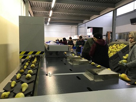 Met behulp van de Zetapack-sorteermachine is het mogelijk om de Abate-peren direct uit de fruitbewaring te verwerken zodat de kans op schade minder wordt.