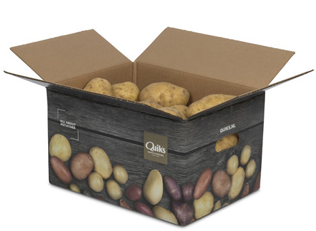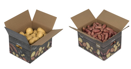 Deze gewichtsgewogen aardappelen vinden hun weg naar horeca en industrie. Voor afnemers in de horeca is hiervoor een handzame doos ontwikkeld met een fullcolour bedrukking die de ongekende mogelijkheden benadrukt.