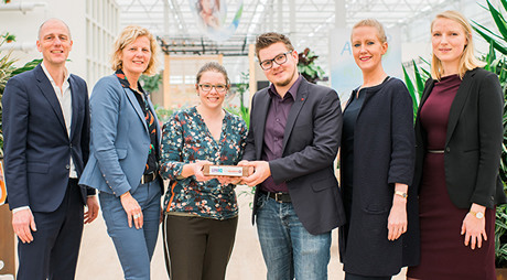 v.l.n.r. Hans Dreijklufft (UNIIQ), Karin Zwinkels (wethouder gemeente Westland), Simone Keijzer (Gearbox), Johan Kreeft (Gearbox), Liduina Hammer (UNIIQ), Suzanne Kroeze (UNIIQ)